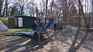De volgende ochtend waren de scouts er weer vroeg uit. Terwijl de leiding hun slaapplekken uit kwamen gerold waren de scouts al in touw om de keukens verder af te pionieren. ’s Middags is gewerkt aan de verzieringen van het kampterrein tijdens in RSW. Het thema dit jaar is ‘superhelden’ en onze superscouts zijn aan de slag gegaan dit zo goed mogelijk naar voren te laten komen.