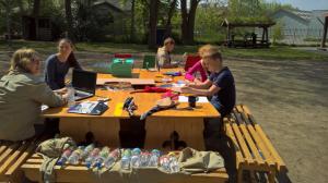 Na een kort openingsspel gingen de scouts vol enthousiasme aan de slag! In groepjes is er gewerkt aan het logboek, de menukaart, themakleding en overige aankleding van het RSW-kampement.
